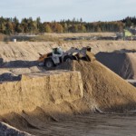 Abbildung 2: Radlader als Gewinnungs- und Fördermaschine zur Trockengewinnung in der Kiesgrube Werk III Oberland, Foto: Sophia Will