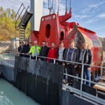 Während der Besichtigung des Großgerätes wurde die Funktionsweise, die einzelnen Arbeitsschritte und Komponenten dargelegt. Während der Vorführung der Gewinnung im Nassabbau, wurde der derzeitig durchgeführten Probebetrieb diskutiert.